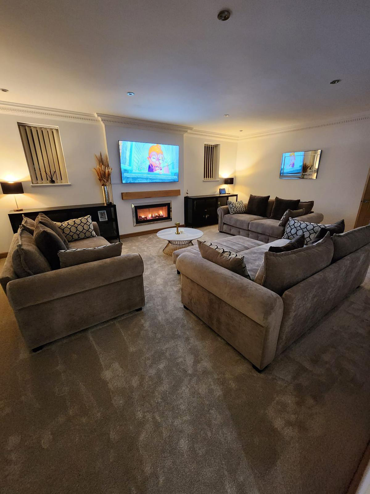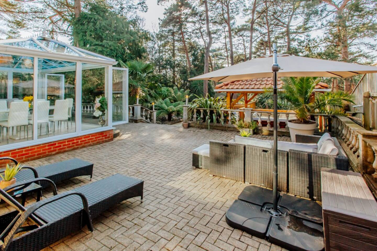 Spanning over 3,500 sq. ft. across two levels, this property offers sumptuous living quarters. The expansive open-plan living space is ideal for hosting gatherings. There are five double bedrooms, three of which include stylish en-suite bathrooms. The home also features a games/playroom and additional children's accommodation, making it versatile for larger family groups. The private rear garden includes a large covered hot tub and a patio perfect for outdoor dining, while two roof terraces offer extra space for relaxation and enjoyment.